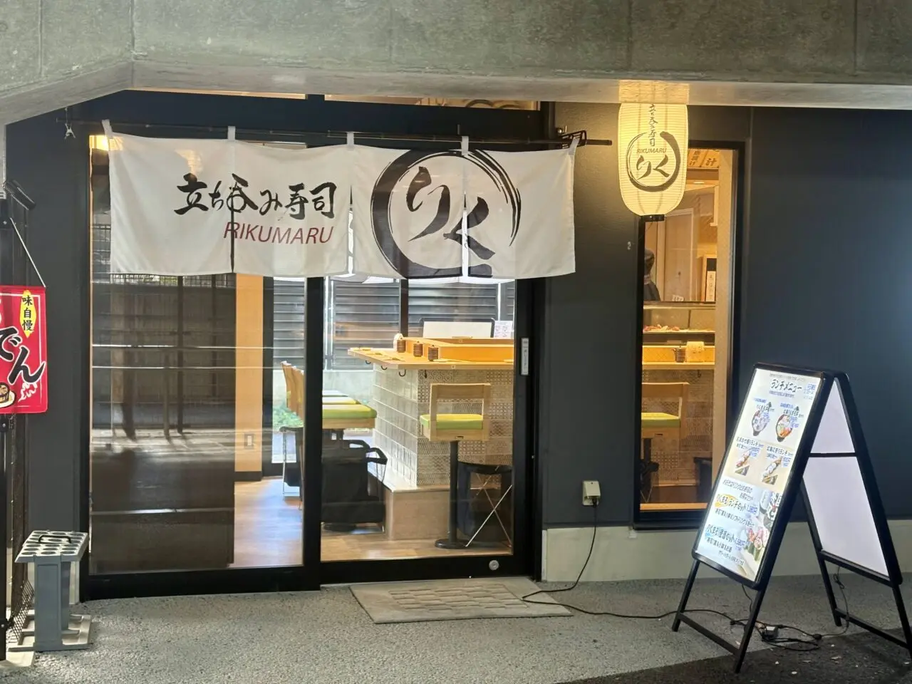 緑の看板と赤いのれんが目印です。