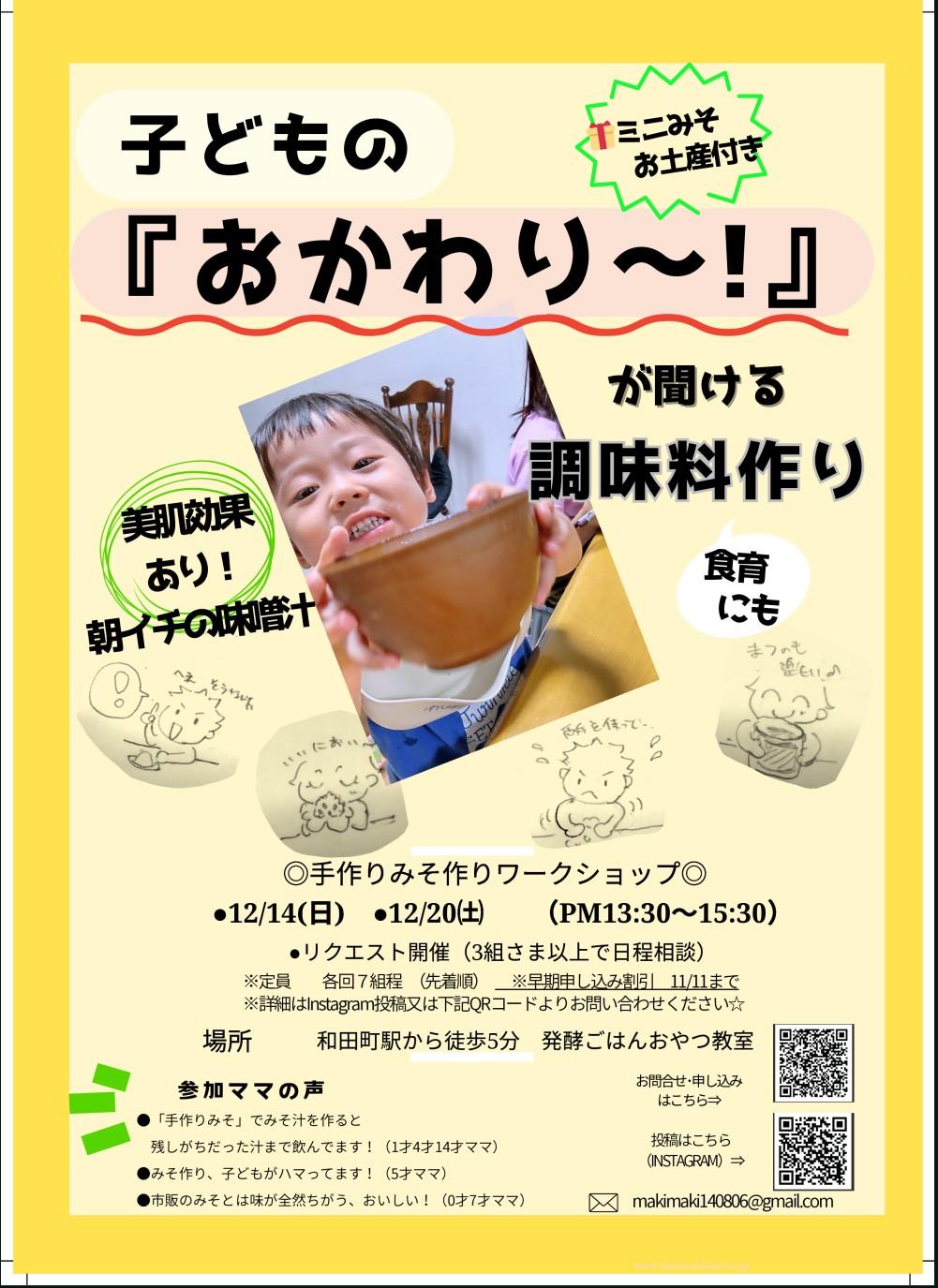 親子で一緒に挑戦できる手づくり味噌のワークショップが、和田町にて開催されます!
