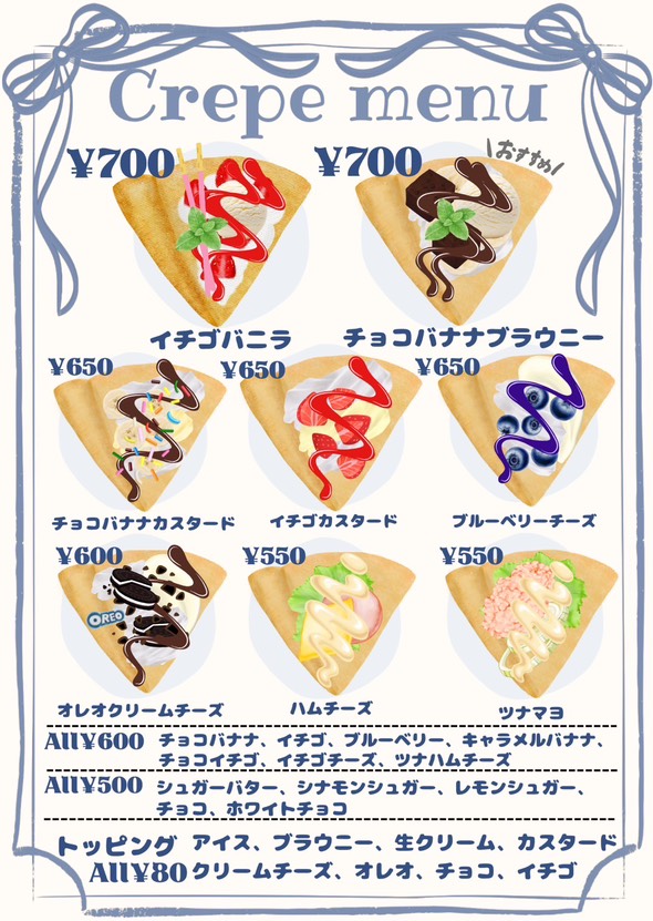 また、シュークリームやパンナコッタなど、クレープ以外のメニューも展開しています。
