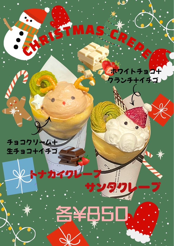 12月限定のスペシャルクレープも販売中。SNS映えバッチリです!