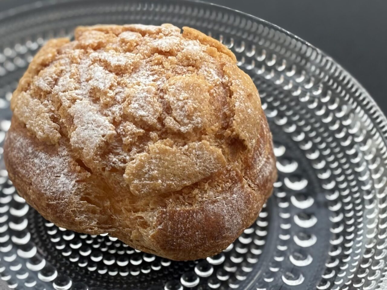 こちらはクッキーシュークリーム(350円)。中のカスタードクリームも自家製です。ザックリとした食感のクッキー生地のなかに、カスタードクリームと生クリームをブレンドした程よい甘さのクリームがたっぷり。