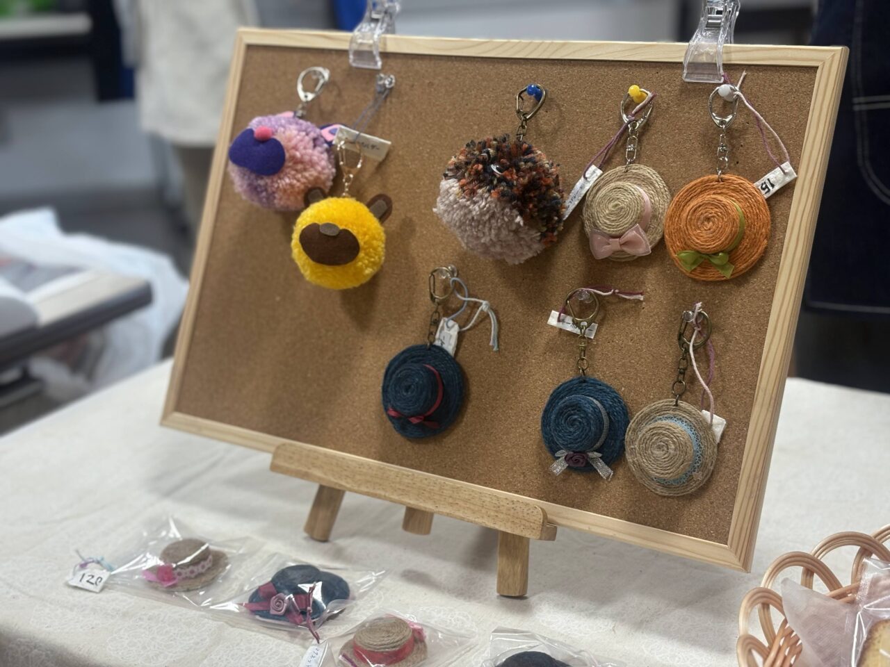 利用者さんが制作したキーホルダーやマグネット、焼き菓子やコーヒーなど、さまざまなものが販売されていました。