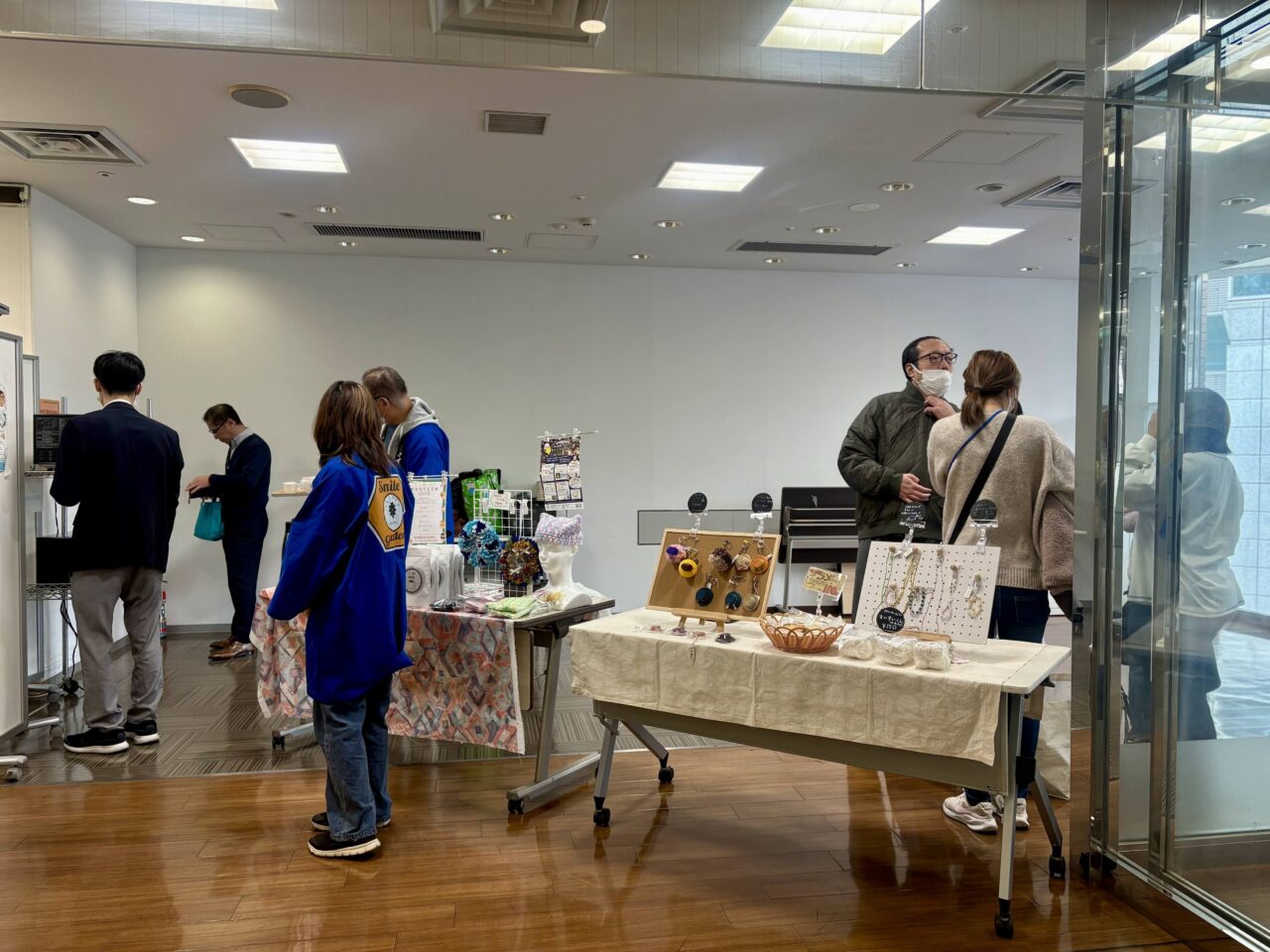 毎週火曜日の11時~14時の間、フリースペースの向かいに特設ブースを設け、ハンドメイド品や焼き菓子などが販売されています。