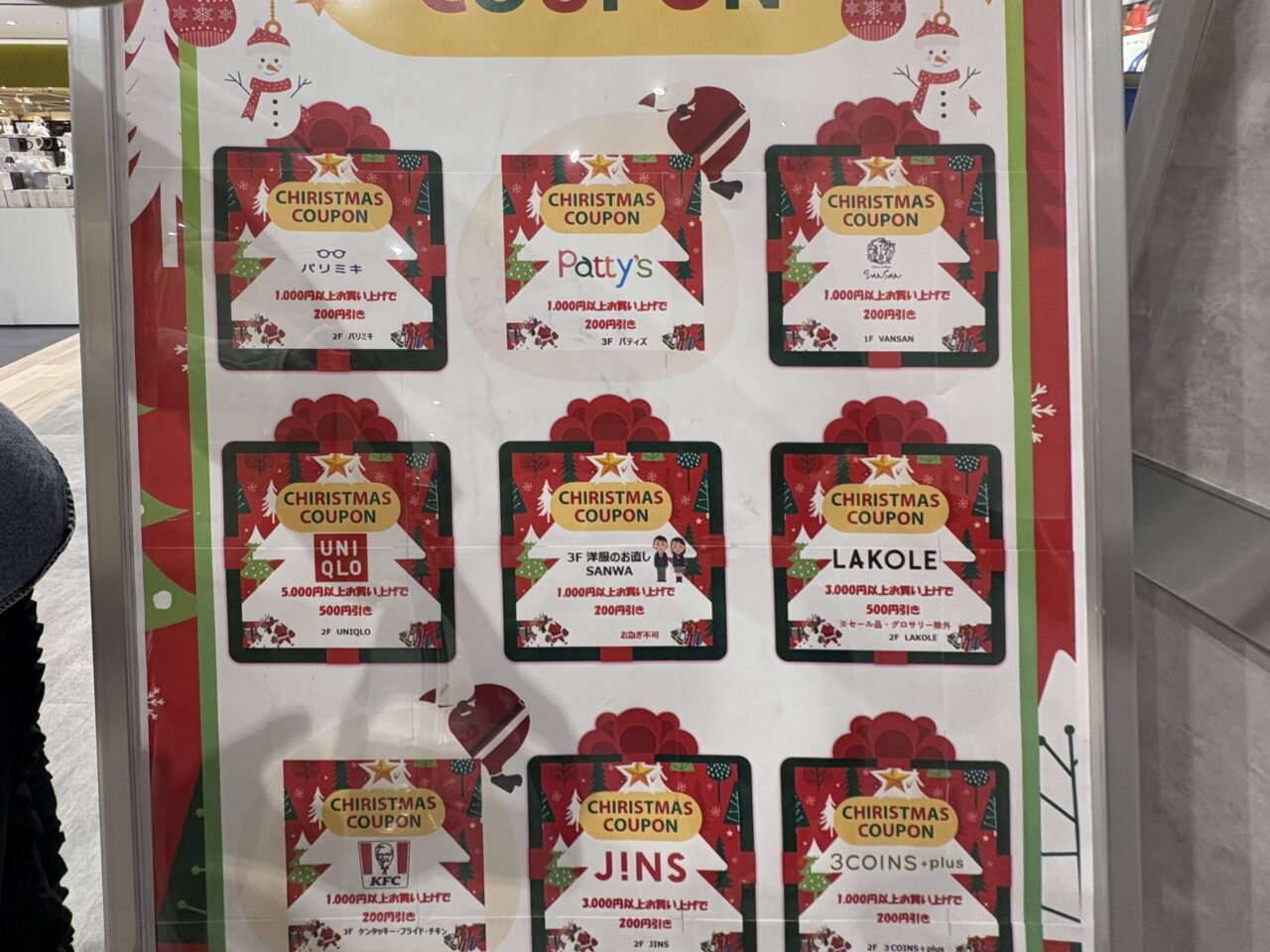 2025年12月23日~25日の3日間で、各専門店で利用できるお得なクーポンが配信されるとのこと。
