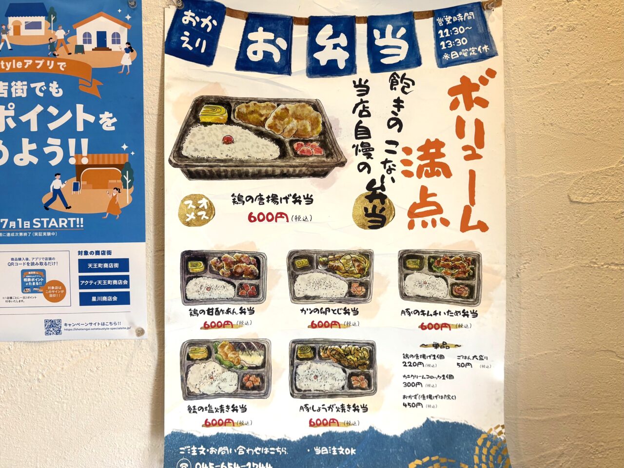 お弁当メニューはこちら。メニューのイラストは星天qlayのコワーキングスペース「PILE」で活動しているアーティストの方が担当されたそうです。