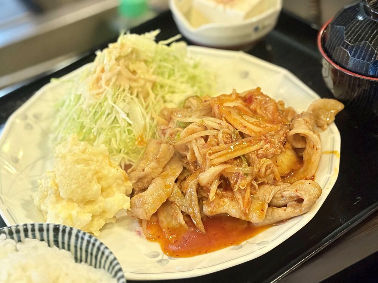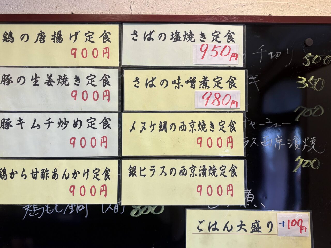 現場作業に勤しむ男性客が中心だったオープン当初の名残で、今でもランチメニューはボリュームたっぷり。プラス100円でご飯を大盛にすることもできます。