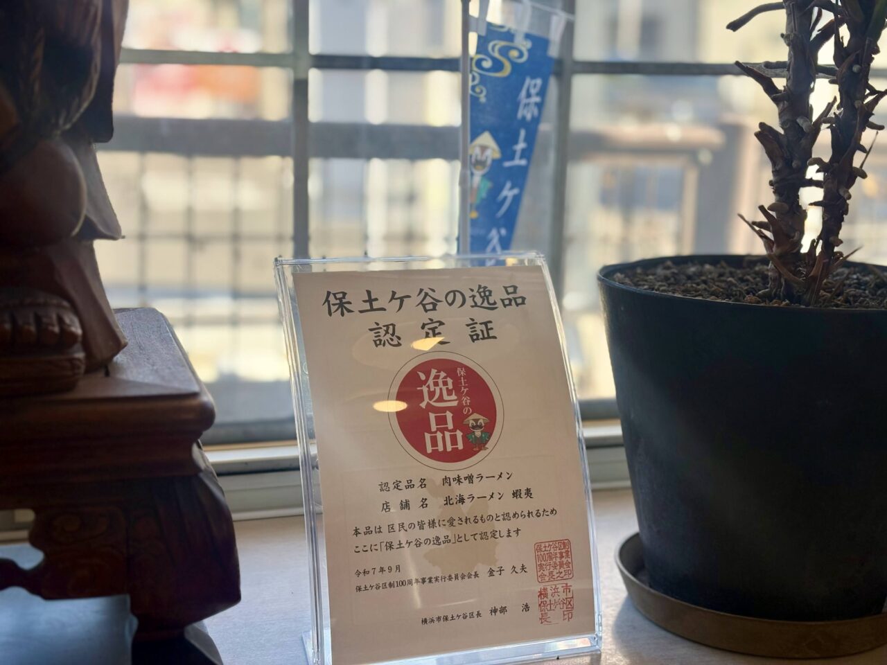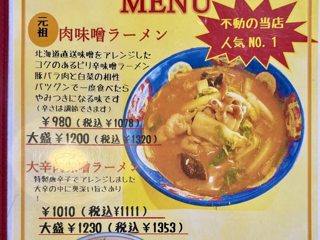 「北海ラーメン 蝦夷」から「保土ケ谷の逸品」に認定されたのは、こちらの「元祖肉味噌ラーメン」。「不動の人気NO.1」とメニューにも記載されています。
