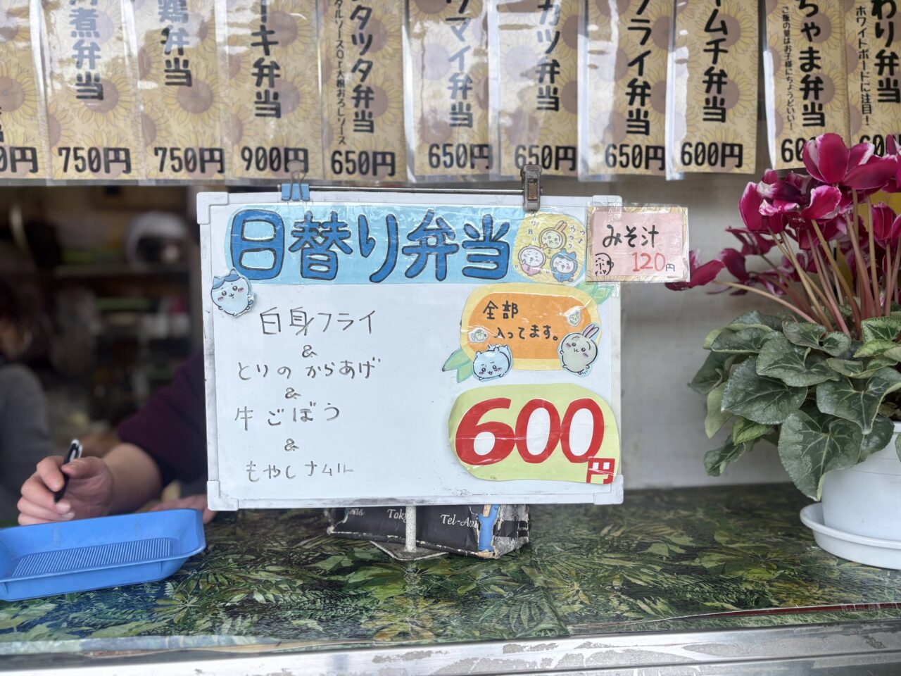 お店の方に伺ったところ、数あるお弁当メニューの中でも人気なのはメンチカツと唐揚げがはいったメンカラ弁当(650円)だそう。その他、日替わり弁当(600円)も人気とのこと。