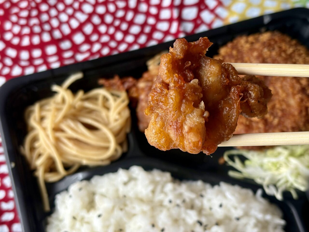 鶏の旨みがじゅわっと広がる唐揚げ。衣は重たすぎず、油っぽさを感じにくいのも嬉しいポイントです。ごはんが進む、まさに“お弁当の王道からあげ”です。