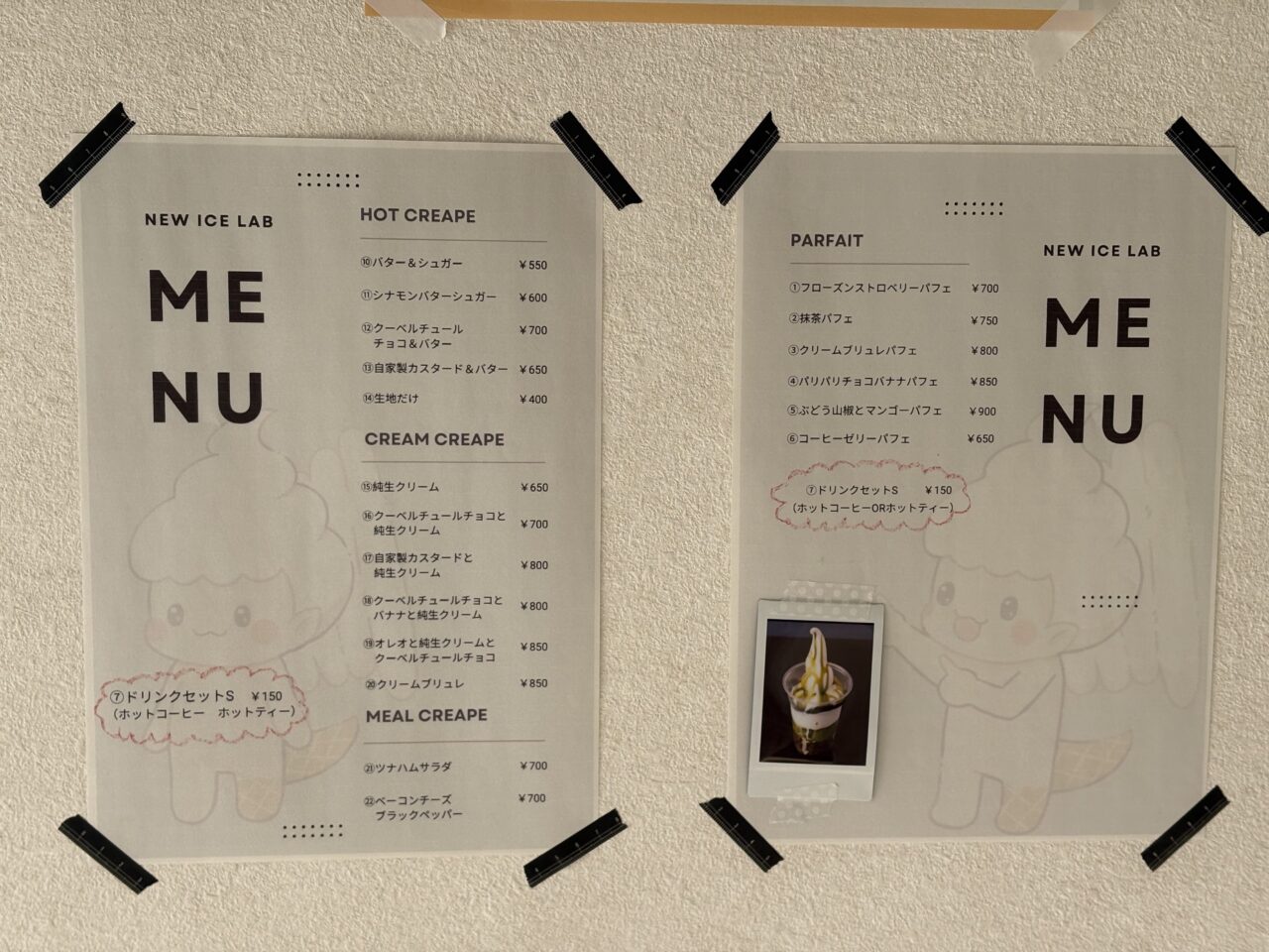 メニューはクレープをはじめ、北海道ソフトクリーム、パフェなど。