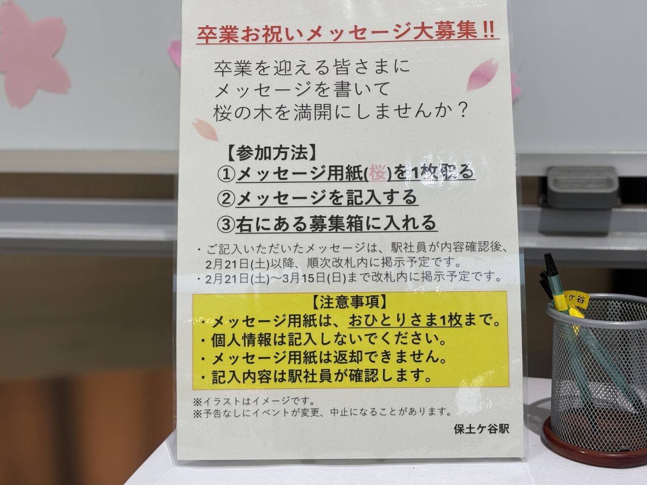 【横浜市保土ケ谷区】JR保土ケ谷駅で卒業メッセージを募集しています!卒業を迎えるみなさん、おめでとうございます。