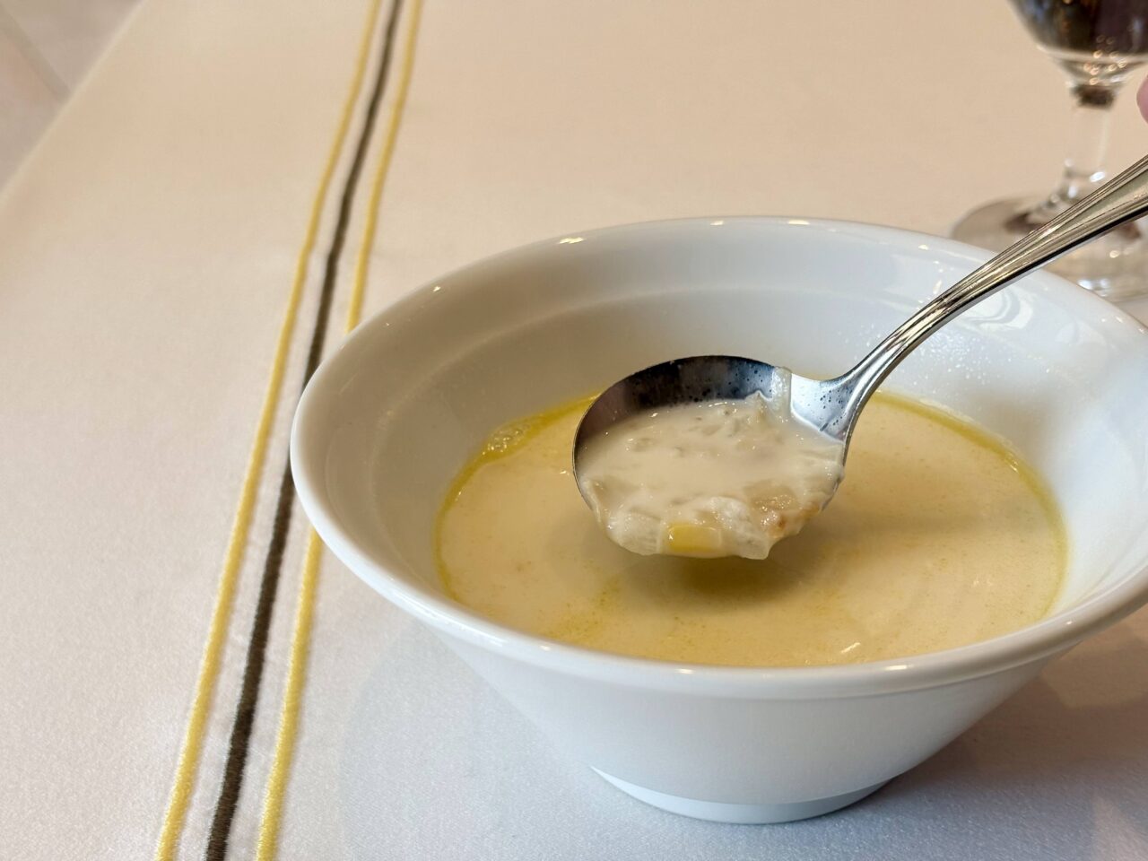 この日のスープはクラムチャウダー。アサリの他、じっくり煮込んだ野菜がたくさん入っていました。