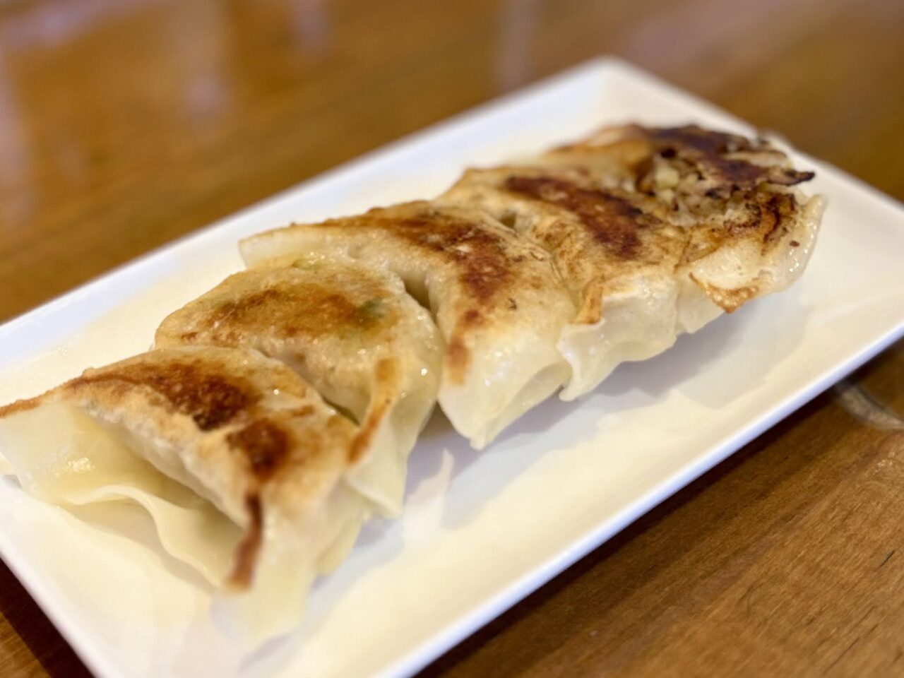薄めの皮がこんがりと色づいたシンプルな餃子です。