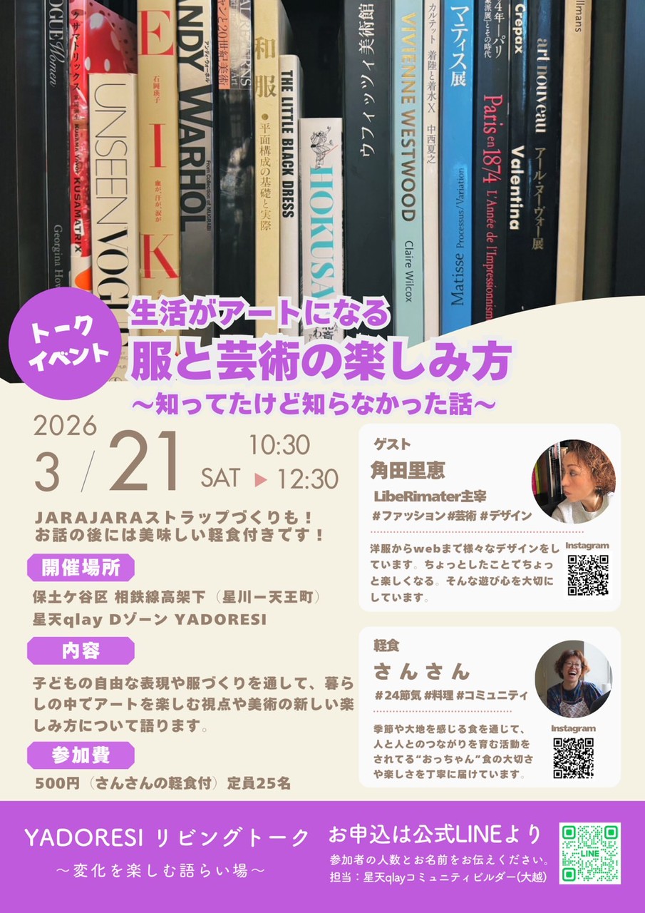 【横浜市保土ケ谷区】トークイベント「服と芸術の楽しみ方」が3月21日に開催されます!