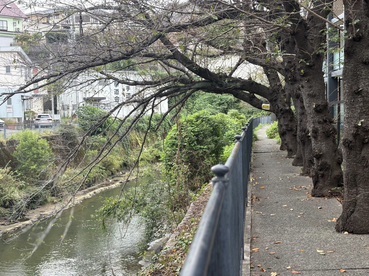 商店街から少し足を延ばすと、帷子川へ出ます。沿道には桜が多数あり、お祭りが開催されるころには見ごろを迎えているかもしれません。