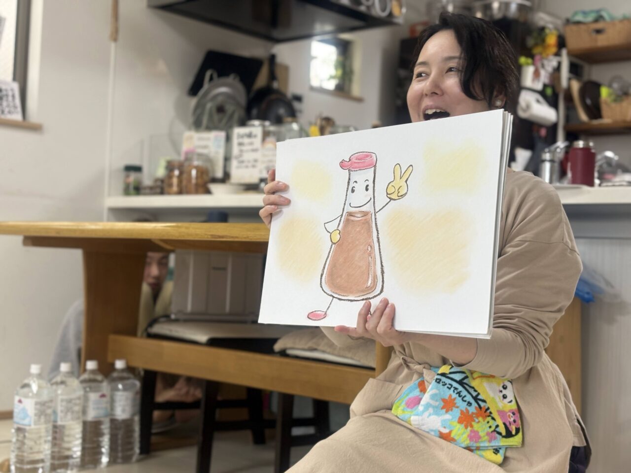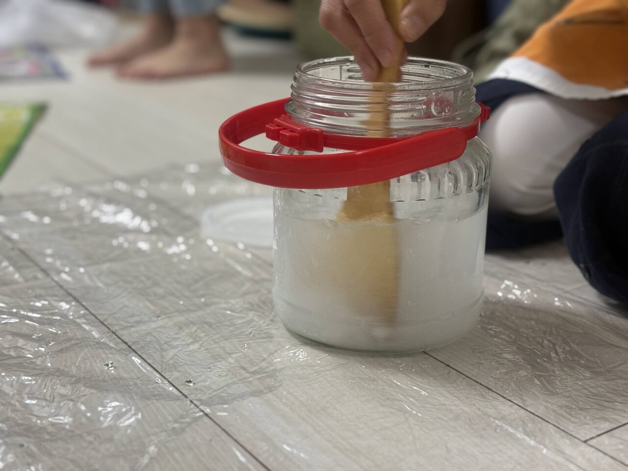 そして、ワークショップ主催の岡部さん自作の紙芝居でお醤油のつくり方を学んだ後は、いよいよ手作り醤油の仕込みが始まります!