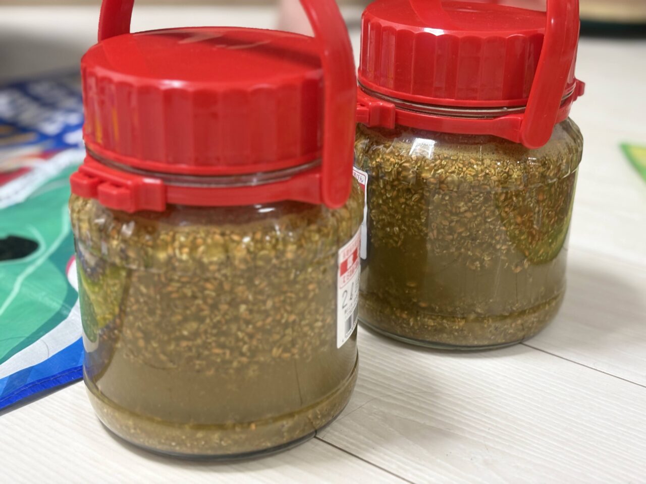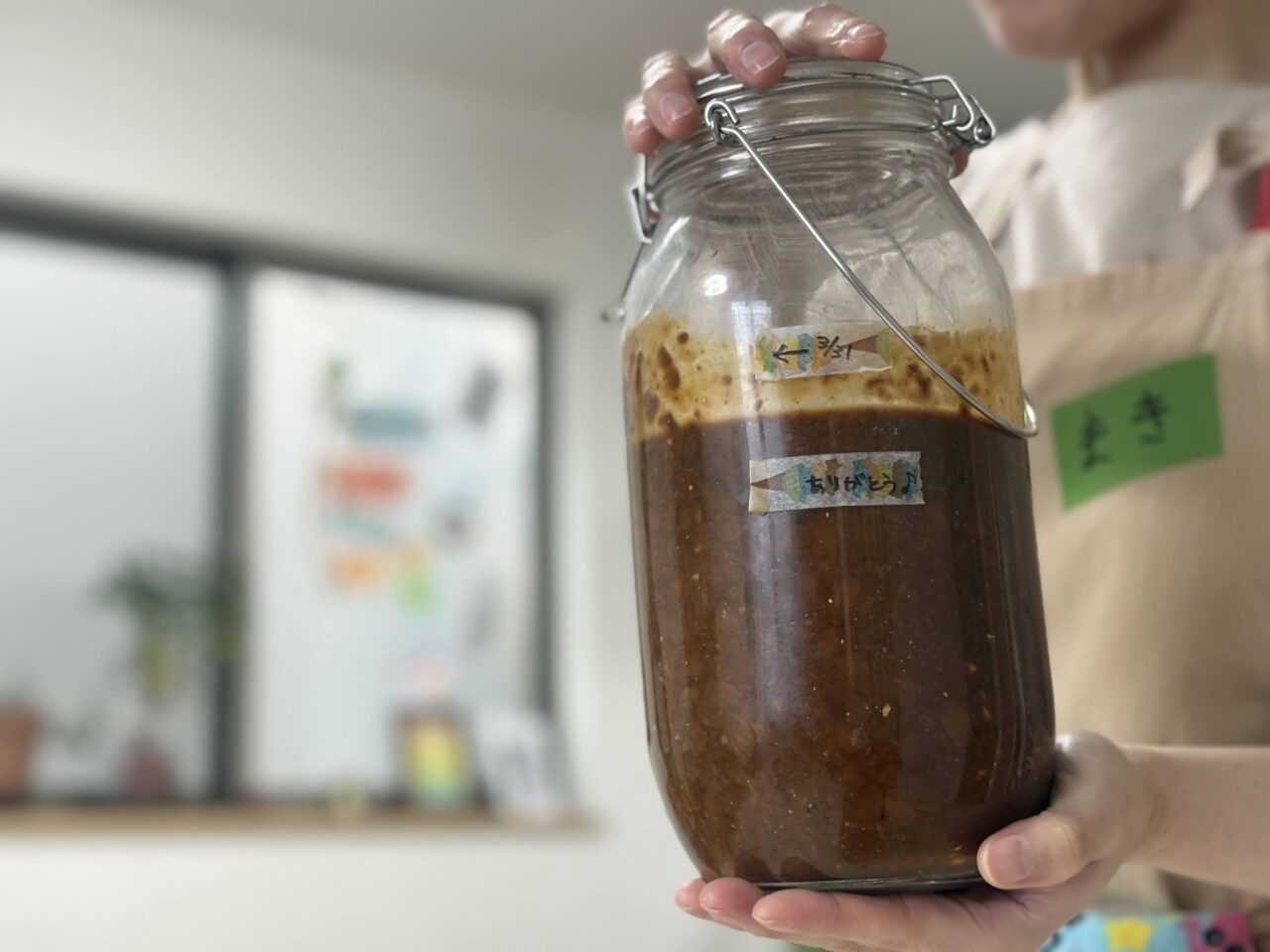 こちらが、醤油麹を混ぜた状態。このまま時折かき混ぜながら常温で保管し、1年後に絞ると、お醤油として使用できる状態になるのだそうです。