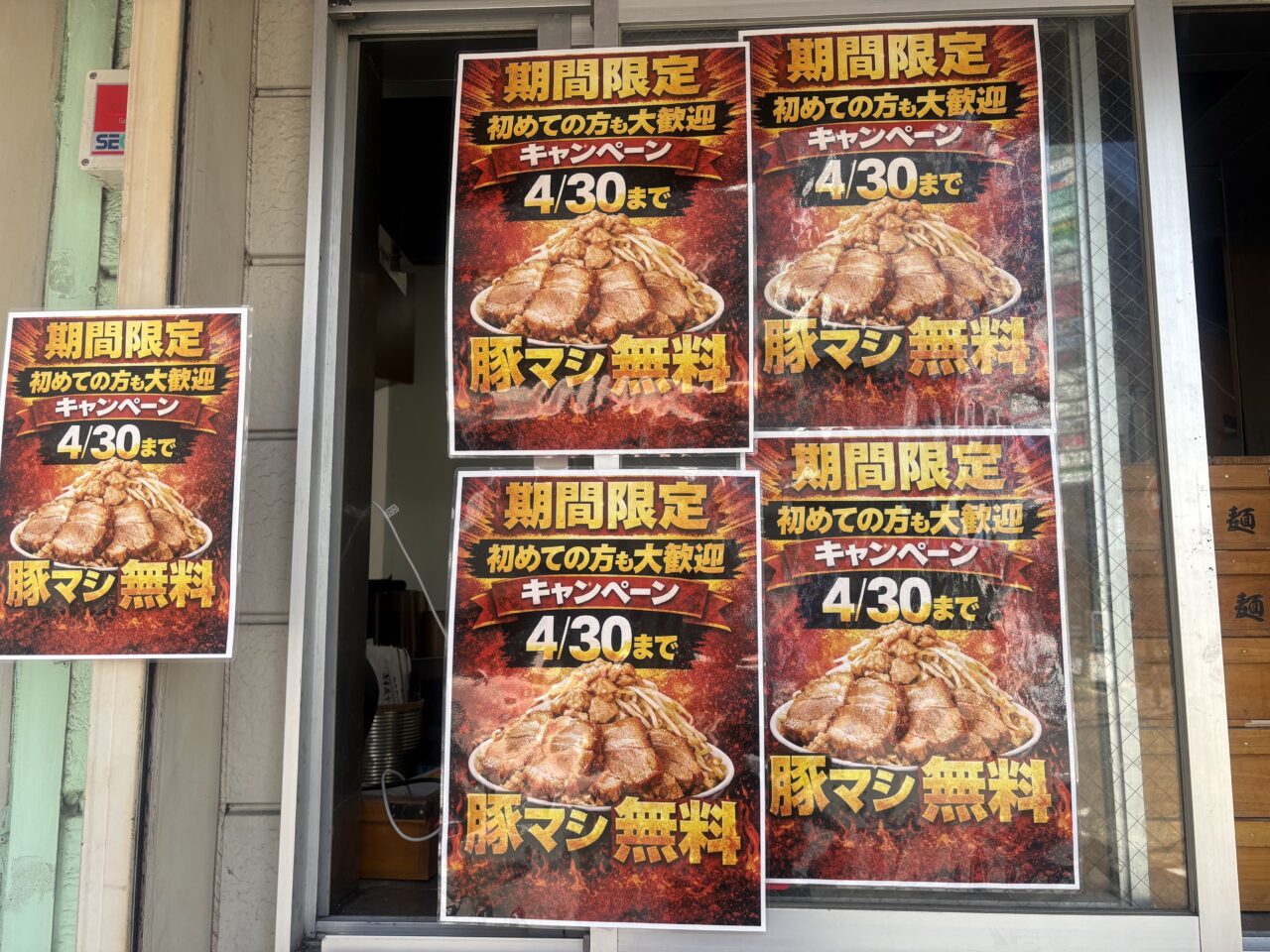 【横浜市保土ケ谷区】天王町の二郎系ラーメン店「豚仙人」で、4月限定のキャンペーンが行われていますよー!