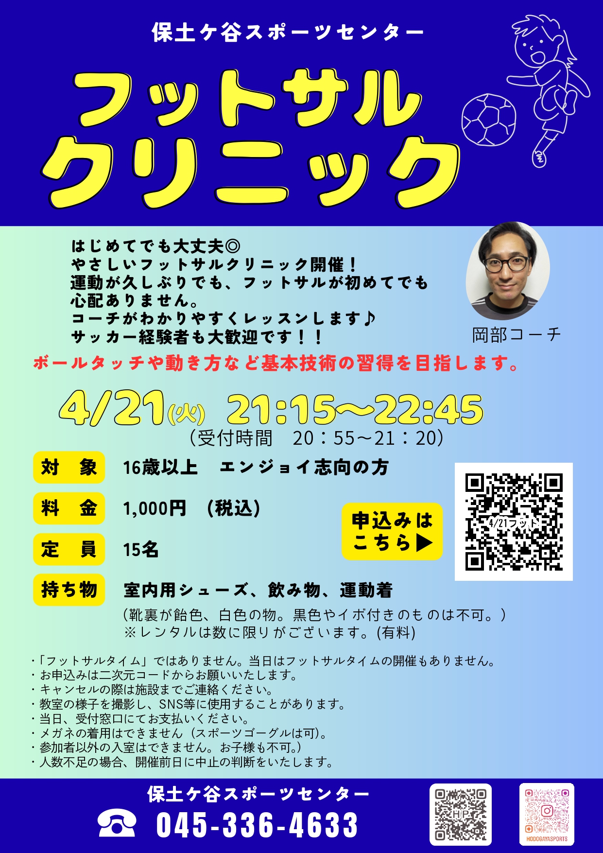 【横浜市保土ケ谷区】初めてでも大丈夫!大人のための「フットサルクリニック」が保土ケ谷スポーツセンターで開催されます!