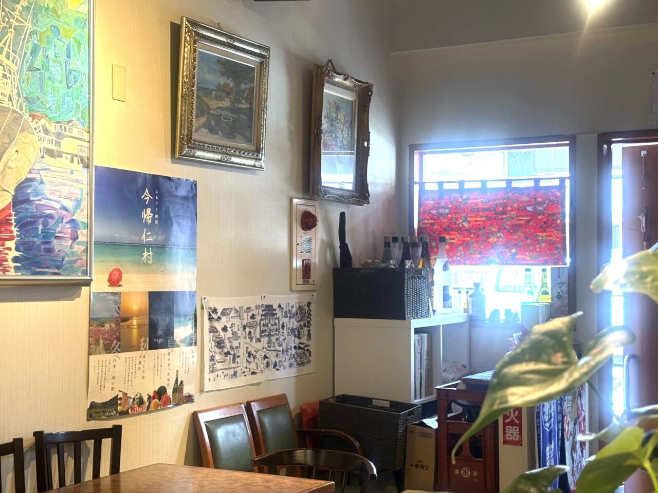 店内には今帰仁のポスターや沖縄を感じさせるオブジェがたくさんありました。